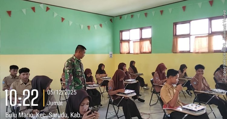 Pasangkayu, - Program pemenuhan gizi bagi pelajar kembali digelar di Kecamatan Sarudu, Kabupaten Pasangkayu, melalui kegiatan Pemberian Makan Bergizi (MBG) yang diselenggarakan SPPG Yayasan Vila Cakrawala Bangsa di Dusun Tritunggal, Desa Bulumario, Jumat (5/11/2025). Babinsa Koramil 1427-03/Baras, Sertu Pasong, turut melakukan pendampingan sebagai bagian dari tugas pembinaan wilayah.